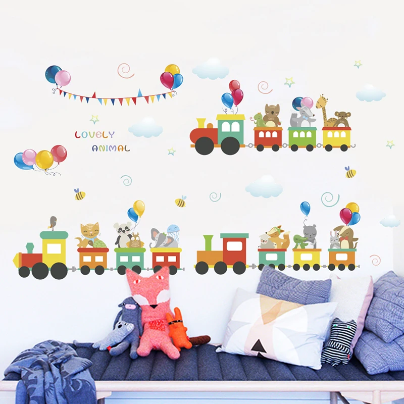 These are more pictures of Lovely Animals Train Wall Stickers For Children Kids Rooms Decoration Colorful Balloon Home Decor PVC Wall Mural Art DIY Decals